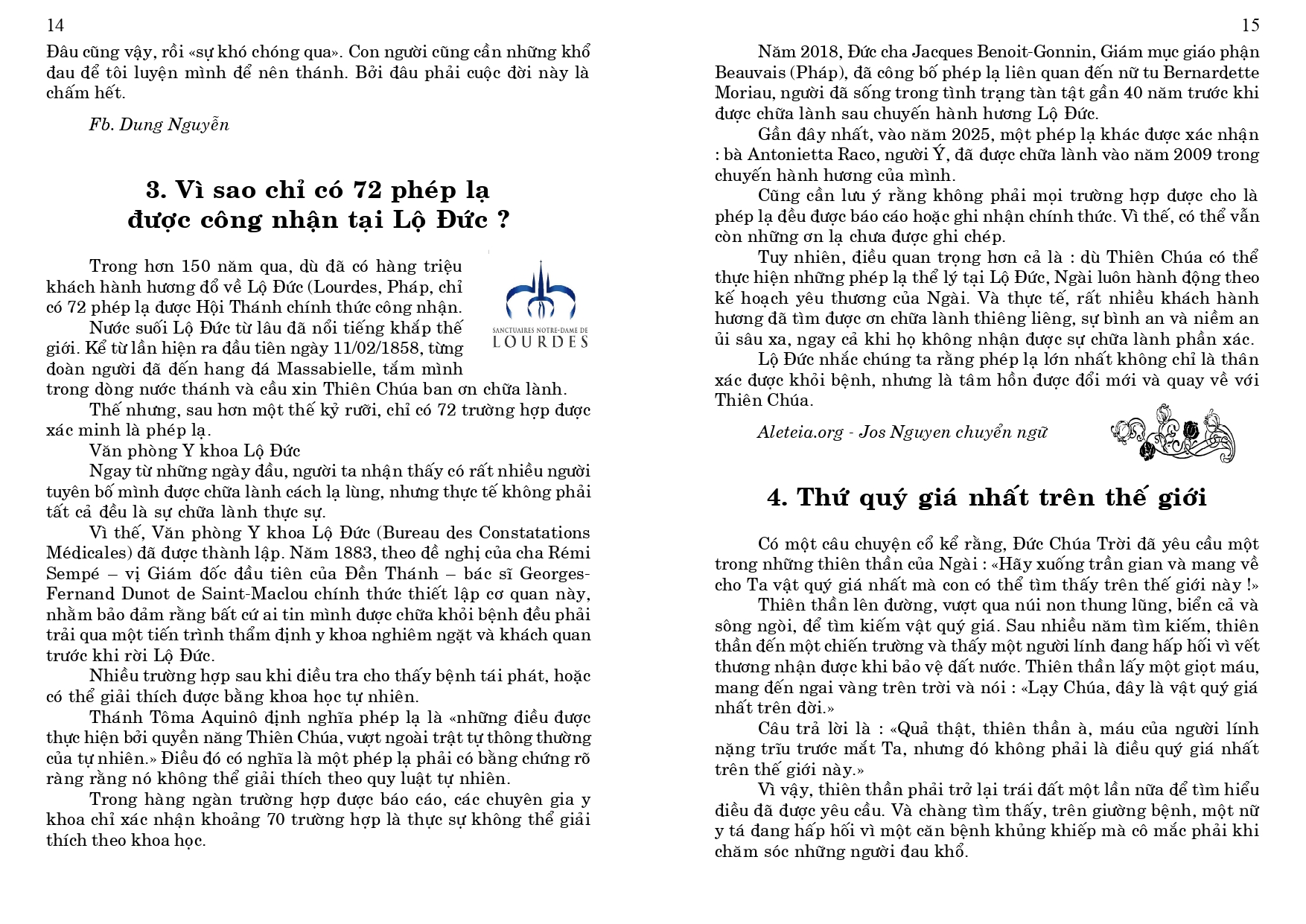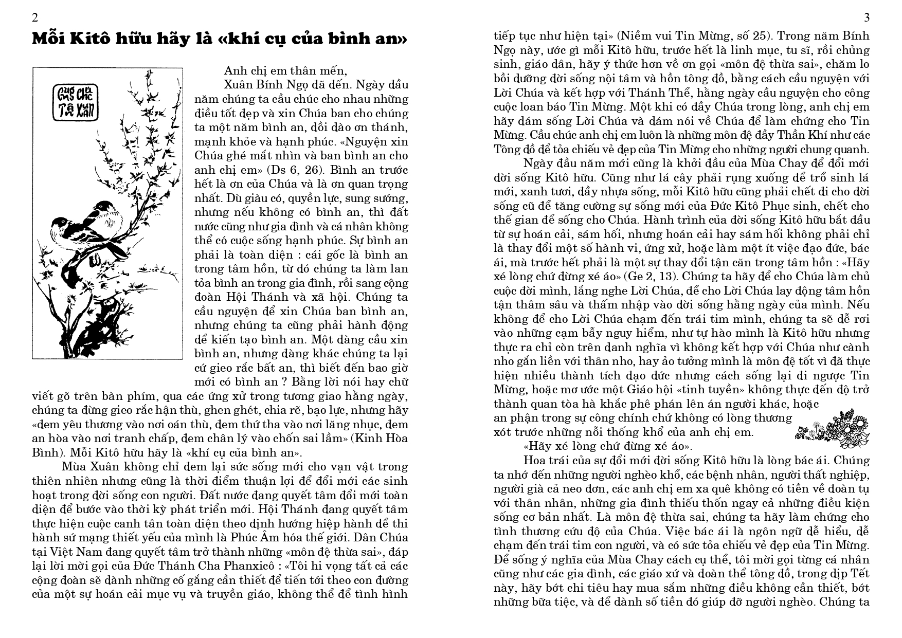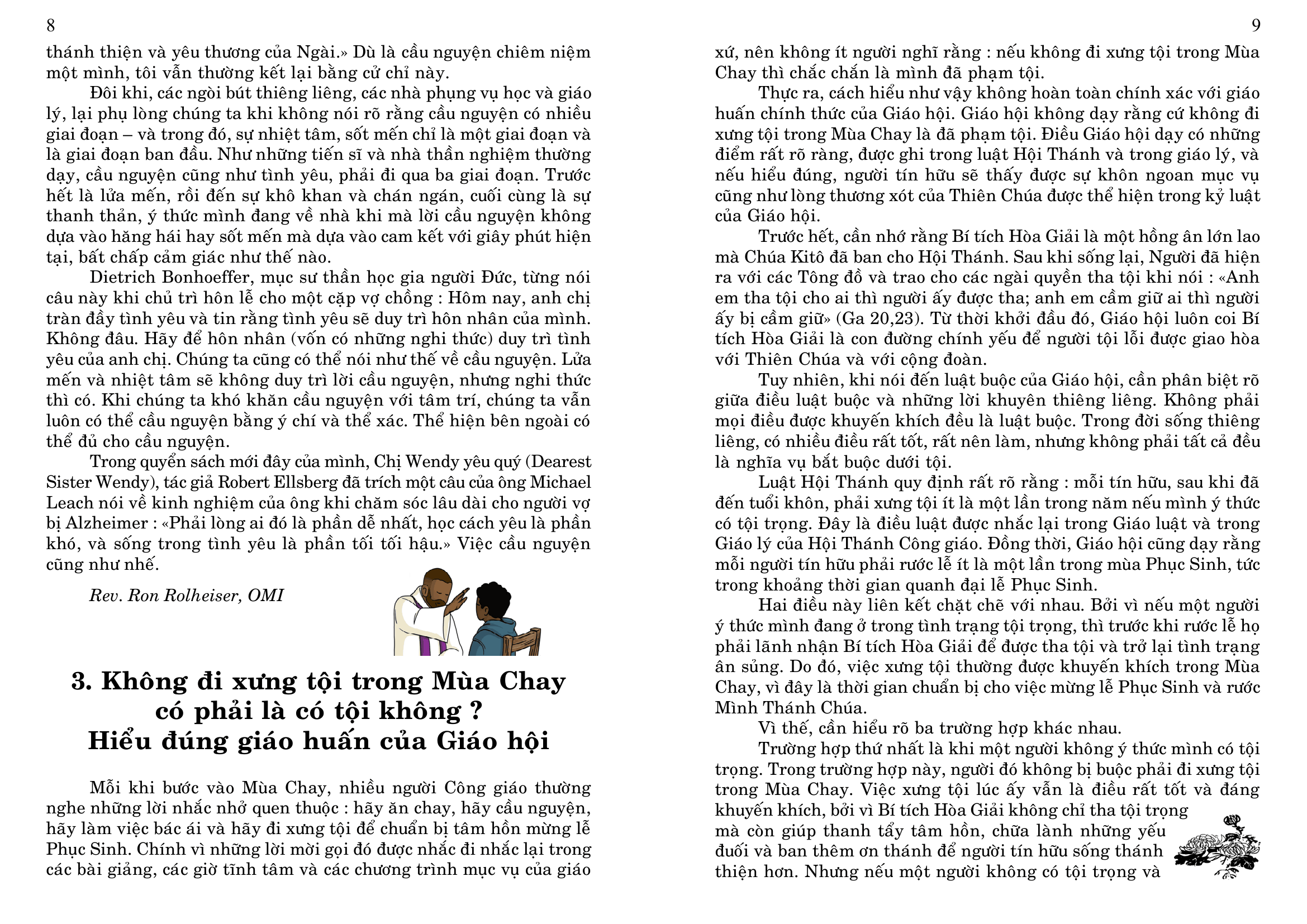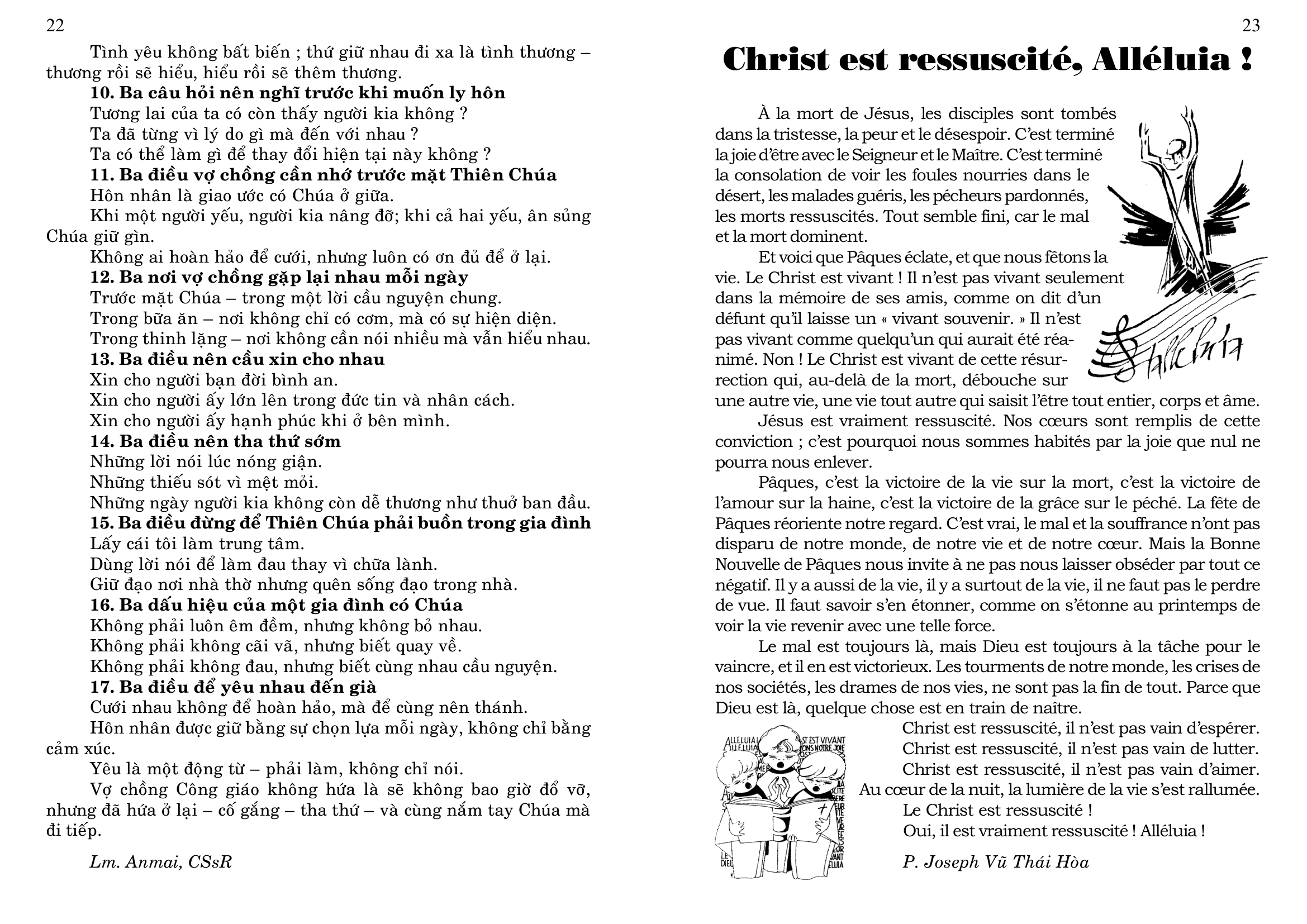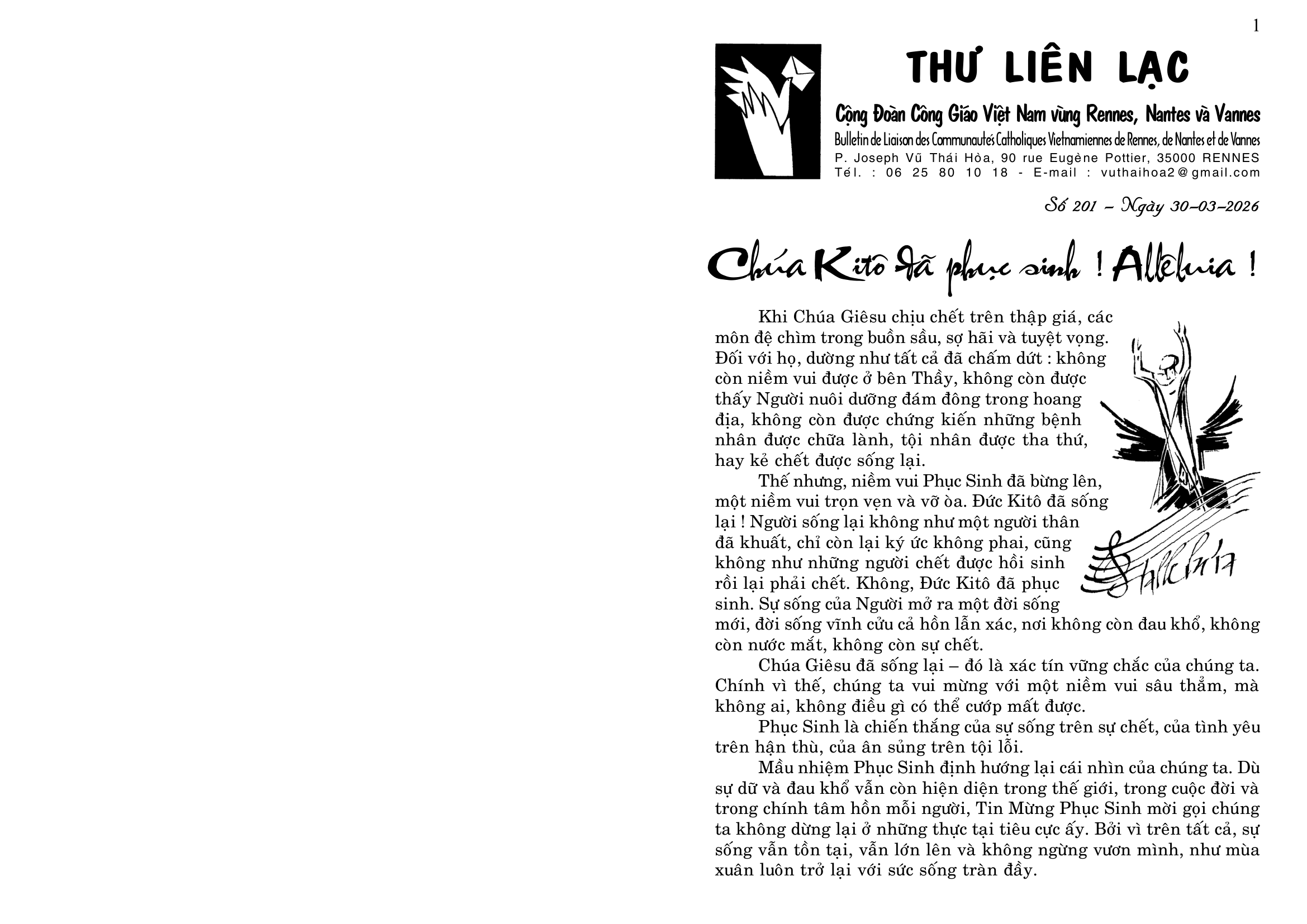 4. Tham dự ngày họp mặt của người Việt vùng Tây Pháp, tại Nhà Địa Phận của Vannes, mỗi năm một lần, thường vào tháng 6, do các Cộng đoàn Công Giáo Việt Nam vùng Tây Pháp tổ chức (Rennes, Nantes, Brest, Saint Brieuc và Vannes), nhưng dành cho mọi người Việt, không phân biệt tôn giáo, và cho các thân hữu người Pháp. Sau Thánh Lễ dành cho giới Công Giáo, có bữa cơm chung cho tất cả mọi người, và sinh hoạt văn nghệ cho tới chiều.