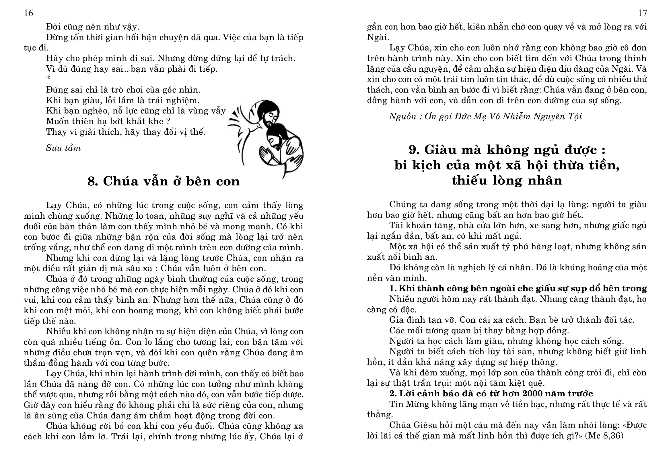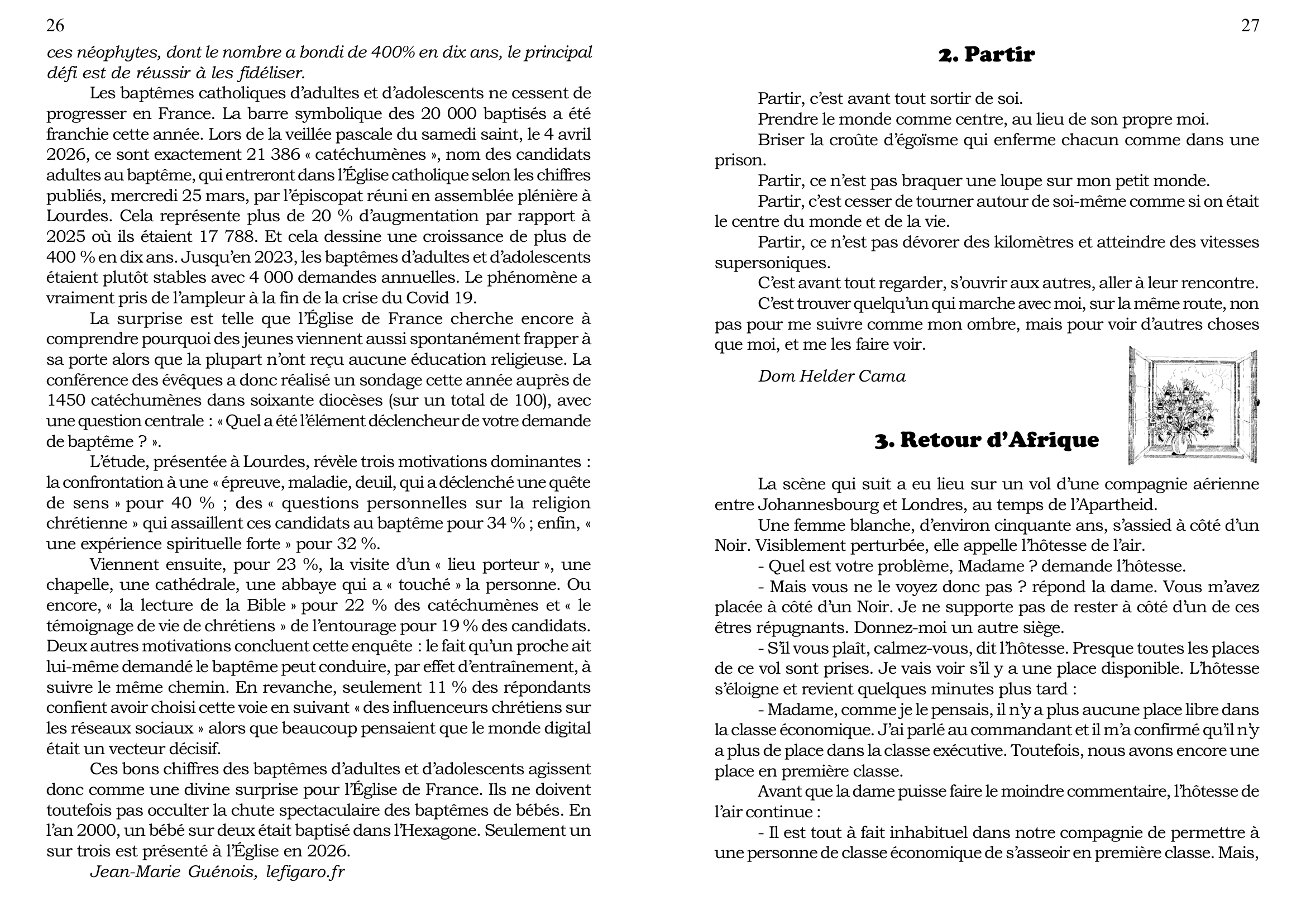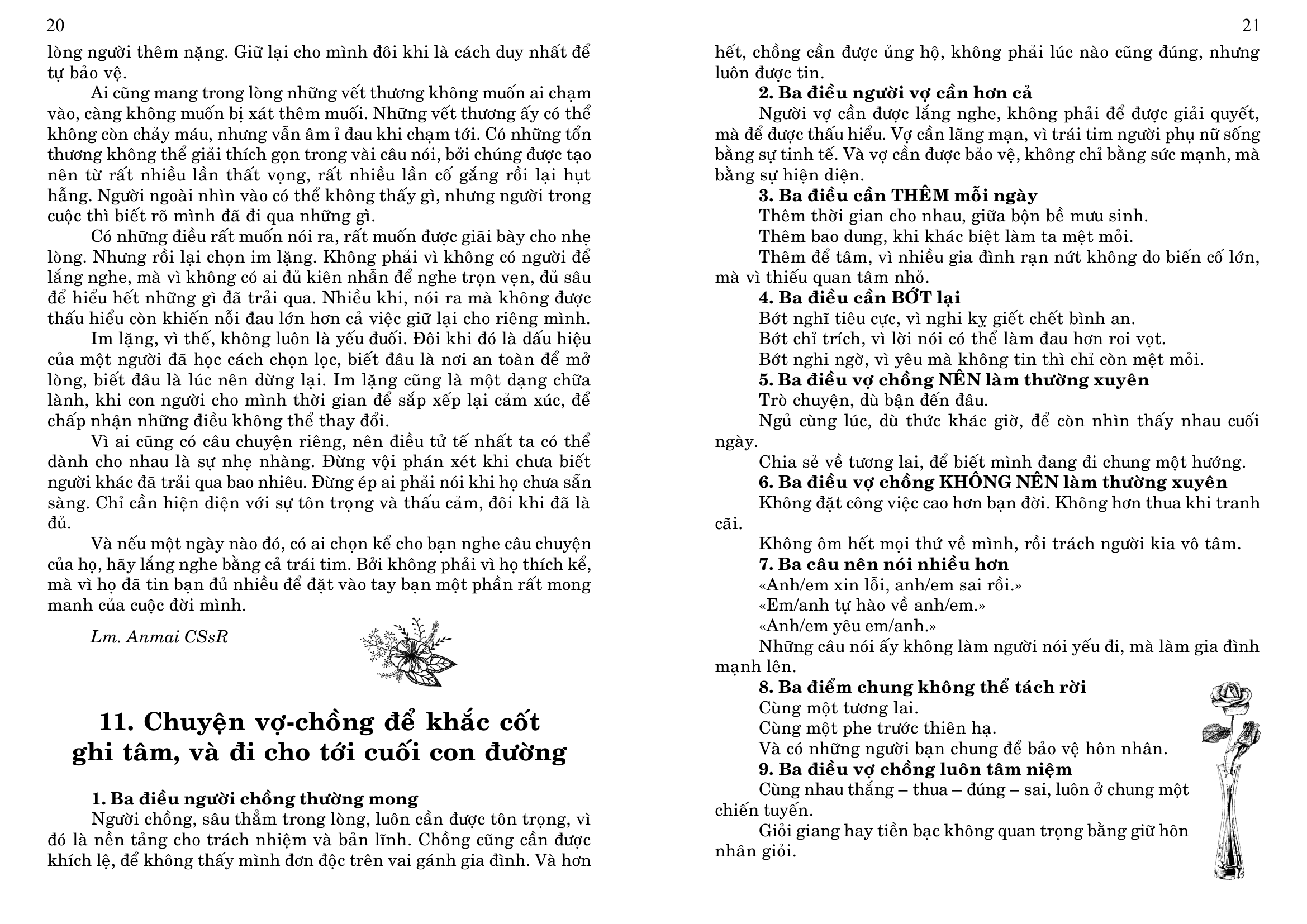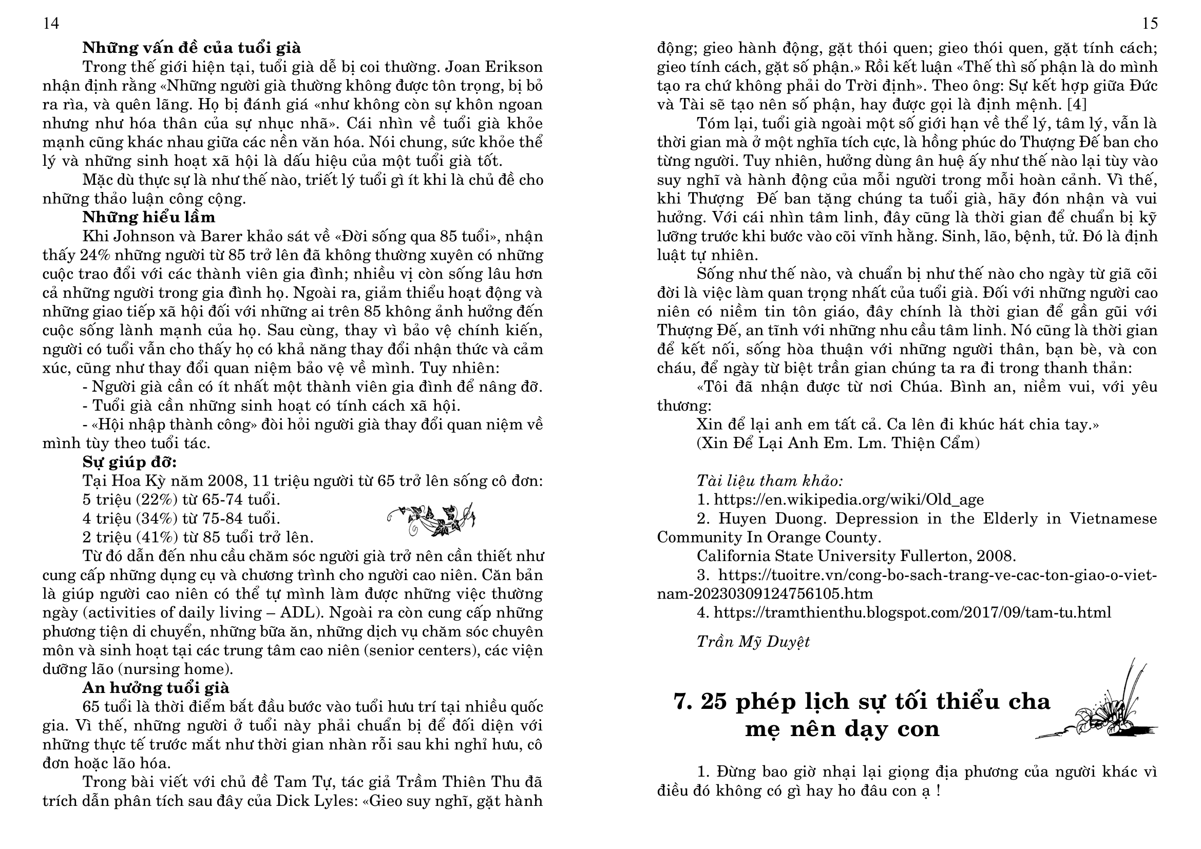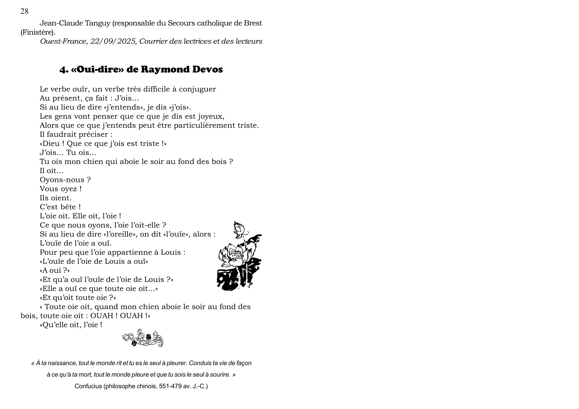 4. Tham dự ngày họp mặt của người Việt vùng Tây Pháp, tại Nhà Địa Phận của Vannes, mỗi năm một lần, thường vào tháng 6, do các Cộng đoàn Công Giáo Việt Nam vùng Tây Pháp tổ chức (Rennes, Nantes, Brest, Saint Brieuc và Vannes), nhưng dành cho mọi người Việt, không phân biệt tôn giáo, và cho các thân hữu người Pháp. Sau Thánh Lễ dành cho giới Công Giáo, có bữa cơm chung cho tất cả mọi người, và sinh hoạt văn nghệ cho tới chiều.