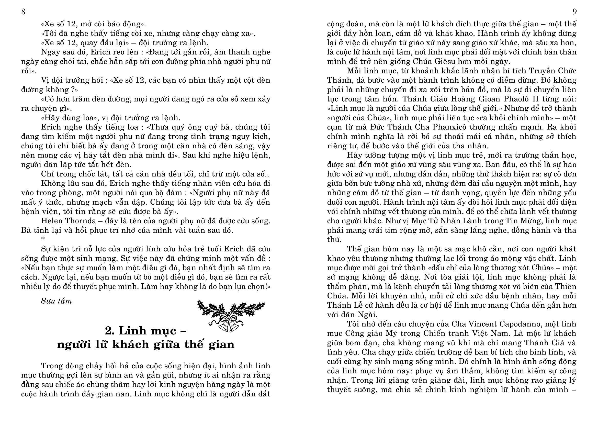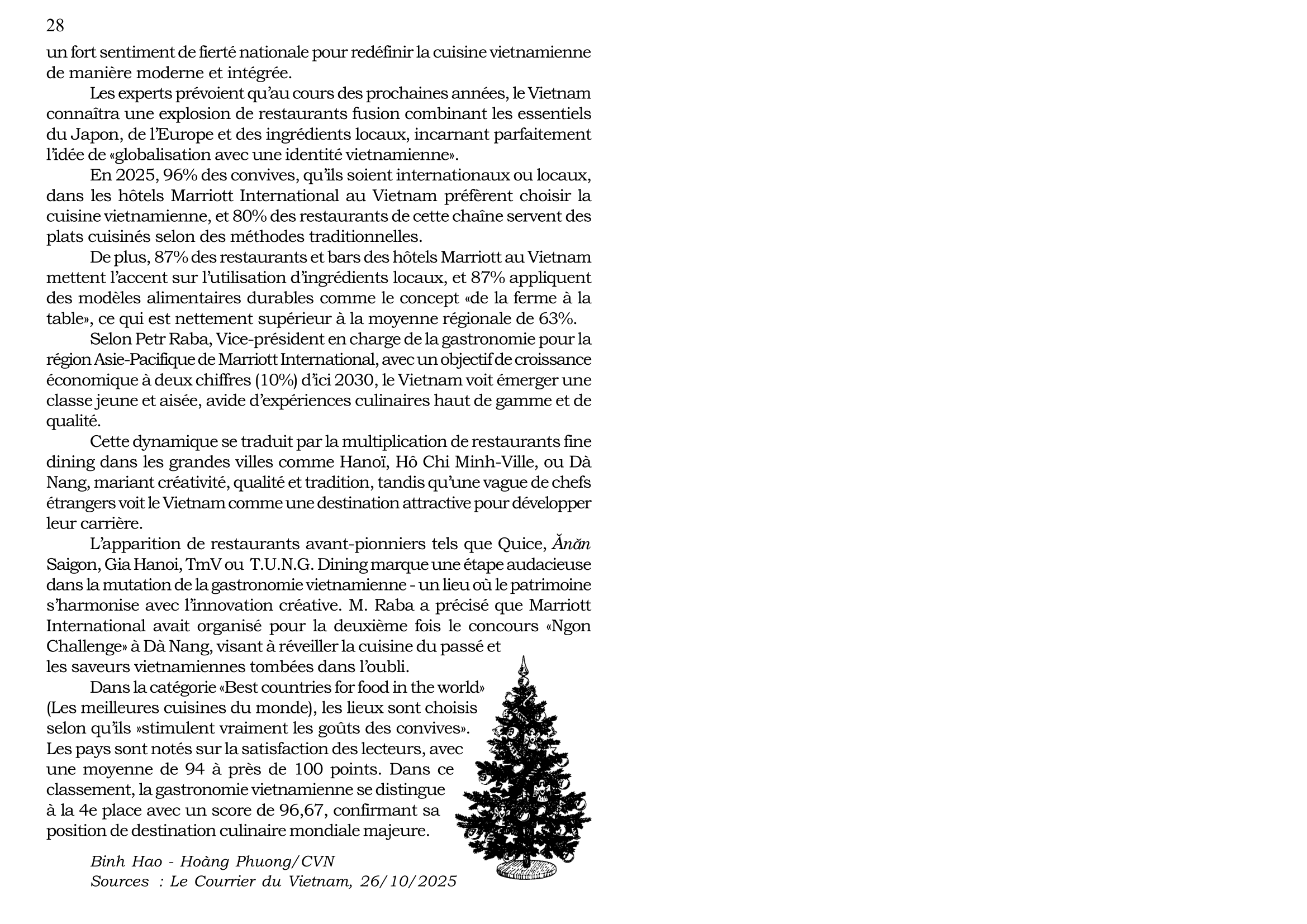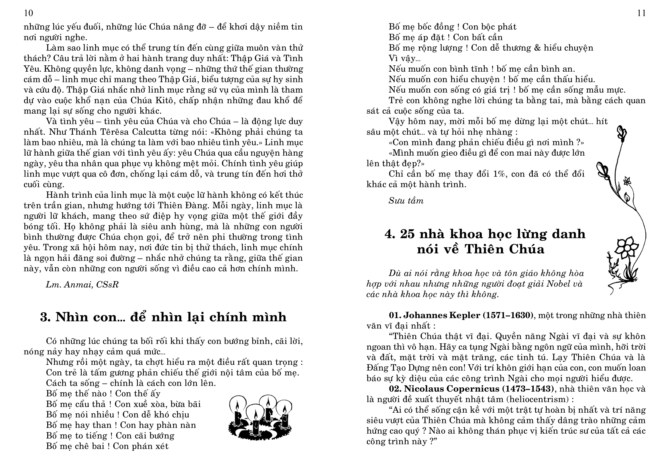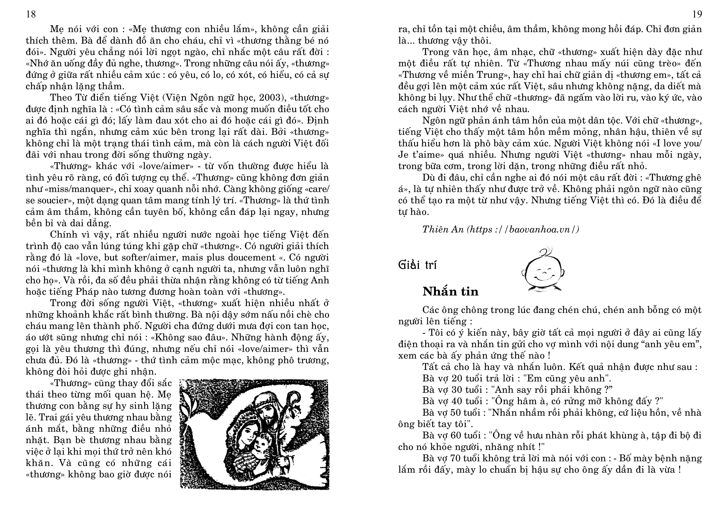 4. Tham dự ngày họp mặt của người Việt vùng Tây Pháp, tại Nhà Địa Phận của Vannes, mỗi năm một lần, thường vào tháng 6, do các Cộng đoàn Công Giáo Việt Nam vùng Tây Pháp tổ chức (Rennes, Nantes, Brest, Saint Brieuc và Vannes), nhưng dành cho mọi người Việt, không phân biệt tôn giáo, và cho các thân hữu người Pháp. Sau Thánh Lễ dành cho giới Công Giáo, có bữa cơm chung cho tất cả mọi người, và sinh hoạt văn nghệ cho tới chiều.